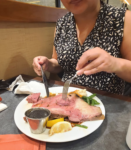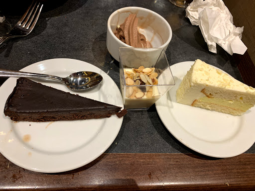 Awesome waiters. One old man name Harold would come to the table and tell funny jokes. Young girl names Jessica would always pick up our plates befor we would get back to our table. Great salmon + steak + green bean+ potatoes and corn. Dessert bar was border line intoxicating.