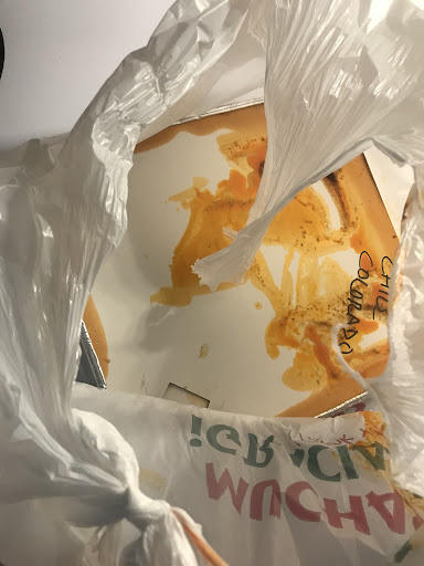 Disappointed. My taco salad was mostly rice 1/2 cup of lettus some beans tini pieces of tomato. No olives, no onion, no sour cream, no cheese, no flavor, mainly overcooked rice on a soggy shell. For 10 bucks.