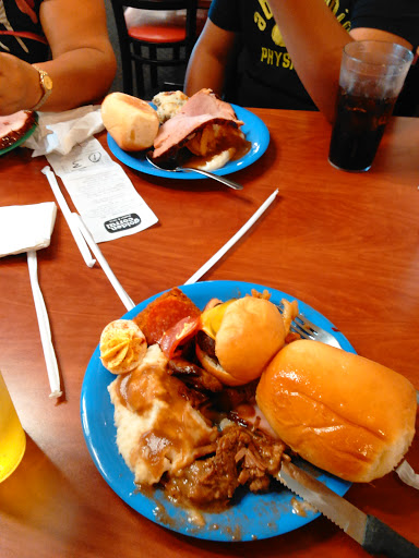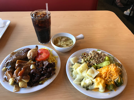 Food was good, wish they offered more healthy choices , with out gravys, not fried, ect. Things are a bit salty. I really dont understand why they changed the salad bar around. They put the lettuce in the middle right where everyone is entering and it ends up clogging up right there. Then they put the dressings in the middle so you have to put everything on top of the dressing. The layout is redicioulous. Several people were in line complaning. I hope they see this and change it around for the convenience of their customers.