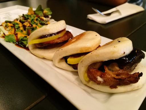 Dont go for the ramen. The food was edible; I would go so far as to call the bao good. But the ramen was mediocre in every respect: tonkotsu broth not savory enough, hard-boiled egg, pork overcooked and badly seasoned, and so on. The eel pineapple rice was also mediocre: the rice was tasty (hard to screw up!), but the eel was rubbery enough that I couldnt break it up with a fork.