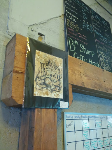B# Sharp Coffee House has an incredible vibe~ Very chill~ Just went to a monthly (last Monday of the month) Creative Colloquy event. What a verbal treat, my palate has been enriched, my ears are aching with the loss of hearing no more for another month....The magnificent news is that B# Sharp Coffee House has events going on all the time! Check out their web site for their calendar.