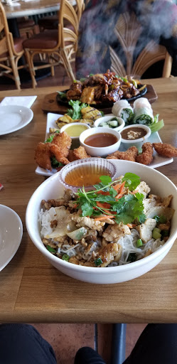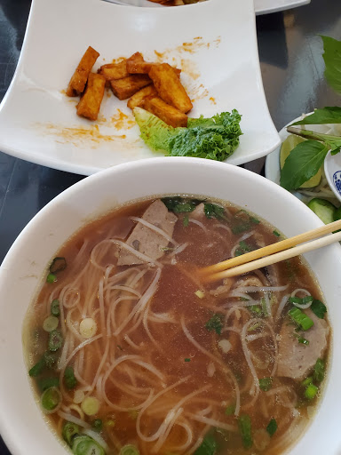 They are liars. Lets start with that. I went in thinking I might try some of their Pho, only to see the price was twice as much for half as much pho as the place right next door. Well, they got me in already, so lets see if anything else sounds good. Ahh, sandwiches are decently priced... So I order a BBQ Meatball sandwich, expecting a meatball sandwich with a slight vietnamese flair thrown in, such as the garnishes and the sweeter flavors of a vietnamese sandwich. I get my sandwich and a 6 oz cup of water. I look at my sandwich. I flip the sandwich around a bit. I look at it again. I ask the waiter over and ask him "Is this the BBQ meatball sandwich?" He says "Yes" and walks off... Okay... Well, huh. The sandwich is a normal vietnamese sandwich by the looks of things, complete with slices of cucumber, rectangular slices of meat, carrots, etc. Lets take a look at those meat slices again. Im not sure what makes a rectangle a ball, but the waiter assured me this is a meatball, a BBQ one at that. There is no sauce to speak of on this sandwich other than the white sauce that is normal for a vietnamese sandwich. I take a few bites, its good. Not what I ordered, but good I guess. Get about halfway in and suddenly my mouth is on fire. Apparently right in the middle of it they mixed in a sauce mixed with chinese mustard. Lots of chinese mustard. I downed the water to save me from this, and was outta water before getting the flavor gone. I look to the waiters clearing the table next to me and ask about getting some water, but theyre too busy clearing the table to give me any mind. Now, I understand, tables need to be clean and all, but there were 2 parties in this restaurant at the time, me, and a group of ladies still deciding what they wanted. I then started to pick apart the sandwich in front of them, ate the meat, and a bit of the bread without sauce on it to try to dull the burn. I got up to pay as soon as one of the waiters was behind the counter because I wanted to leave this place that badly. While paying, I asked if he could pass on a suggestion to the owner. I calmy told him that the BBQ Meatball sandwich needed to be renamed. He asked why. I started with explaining the lack of meatballs, to which he responds "Oh no, we cut the meatballs up." Many things pass through my head here including the fact that the pho has circular balls of meat as an option and they actually use them uncut for it... and the fact that at best they cut up a meat ovalloid for my sandwich. Knowing Id get nowhere, I went to point 2 "That wasnt BBQ, there was no sauce of such and it would have been sweeter and tangy if it was. This burned my mouth." He doesnt seem to hear me and ignores me as he hands me my change. I leave... So, one of two things happened. 1: Their BBQ Meatball sandwich on the menu means something entirely different than logically imaginable. 2: They gave me the wrong sandwich hoping I wouldnt notice and then insisted on making it out as if this was the correct sandwich when shown proof otherwise. Neither one pleases me at all. Service was horrible, the menu lies, and the food was while mostly pleasant, way too spicy for a food item that should be sweet.