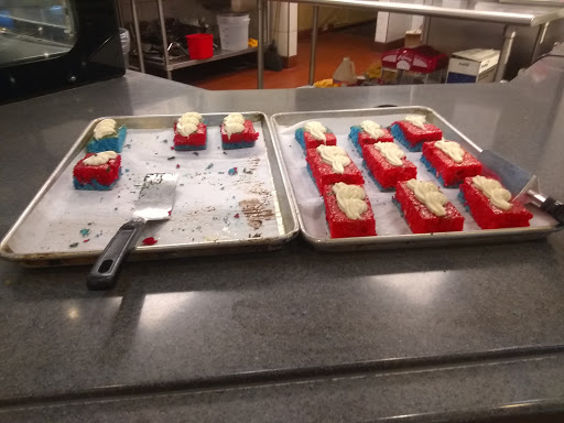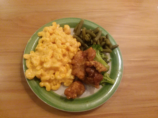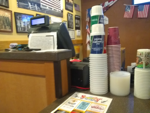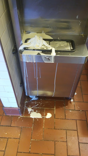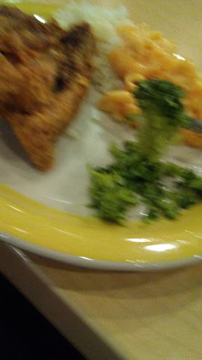 The dishes and utensils are never clean and usually wet.I rinse mine under the hot coffee before I use them. This is a bad place right on the bus route shooting in here once. The patrons pick food up with their fingers and put back the same way. Lots os cleanliness problems, no hotwater in the lavatories to wash your hands and it is also the same place employees use.no hotwater. The price is too high for the atmosphere and the drinks are wasted by the kids it was better when they had the old soda machines. We always get the chicken.