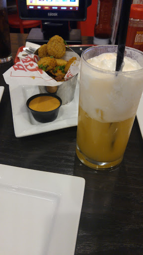 Our first time eating at a Red Robin. Food was pretty good, though I dont know why they call it bottomless fries when our waiter Araon, he never came back once to check on us. No bottomless drinks or fries. I asked for steamed broccoli instead of fries, still got fries. I was disappointed with service from server because Ive been too restaurants which were busier and better service than here. They seemed to be staffed adequately. Maybe our server was just slow. Not sure if I would go back to this Red Robin. If I were to visit Red Robin again it would only be because the burger was great and bill was reasonable. Appetizer was pretty small to be 7.00. You dont get enough chips for the queso dip (and it was good)