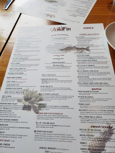 I have gone to Wild Fin three times now and each experience I have noticed the wait staff are kind of crabby and act put upon. Not friendly at all. Not even a smile offered. Also two of these times I overheard two waitresses complaining about a co-worker in front of me. I dont care how good the food is, this behavior wrecks Wild Fin in my opinion Ok I went back a 4th time because its a really nice location. But seriously pitiful In every other way. Food is ok but wait staff are crabby and stressed probably because they are getting the heat for slow terribly inept service. One table was complaining that it took them 1 hour just to get their drinks, then they waited another hour and still did not have their food. Wow! Sad I hope Wildfin can pull it together
