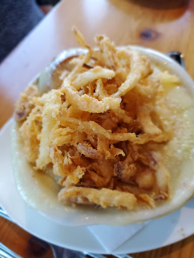We had a reservation so didnt have to wait to be seated, however we waited a good 10 minutes before our server came by with water and asked for our drink order. Husband ordered an alcoholic drink which took about 20 minutes to get, and like other restaurants we werent offered any kind of appetizer which I thought was odd. Once we did order my husband ordered Fish & Chips or they call it "All In" for himself and Mac and Cheese for me (side order), the food didnt take too long to come out however, my husbands never showed up...we could see the kitchen from where we were sitting and saw multiple orders just sitting in the window and people just standing around while they sat and got cold. Mine was served in a cast iron skillet and the top was like room temperature but as I got to the part that was against the skillet it got warmer. I was halfway done with my food when my husband and I realized the waitress mustve not put his order in, theres no way fish and chips takes longer then Mac and Cheese...she had only came by once to ask how the mac was and that was right after it was dropped off so we hadnt had a chance to tell her we were still waiting for his food. When she brought the check she asked how everything was and he told her we were still waiting for his food, she got a deer in the headlights look and said she didnt him say that. She immediately put in the order and came back to tell us dessert would be in them. About 10 minutes passed and still no food, she came back and said they had burned the fish...so now the whole meal would be taken off the check, finally after about another 10-15 minutes my husband was able to eat. Large piece of fish but only 1, fries that were cold and tasted like they were from the day before, & a little side of slaw. We got there at 930 for our reservation and didnt leave until almost 1130. The location is very nice being right on the water, however the staff is like non existing (you see them walk off behind this wall and dont see them again for 5-10 minutes), the food just sits in the window waiting to be picked up, for their prices you would think theyd be more professional, however the prices for the quality of the food wasnt too bad but for the service it wasnt worth it. And being New Years Eve it wasnt even that busy...