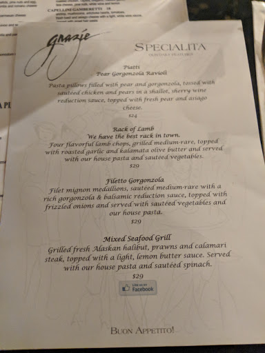 Our go-to special occasion spot, Its always a treat! Amazing, friendly staff. The calamari appetizer never disappoints, my personal favorite dish is the filetto gorgonzola with a rich balsamic gorgonzola sauce and frizzled onions (probably the best thing Ive ever tasted). Weve tried a number of other dishes, everything on point. I cant recommend this place enough! Reservations strongly recommended, no matter what day of the week.
