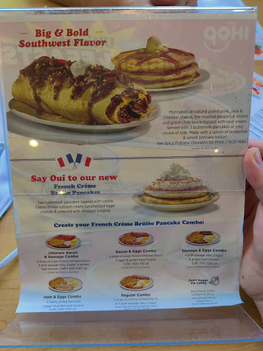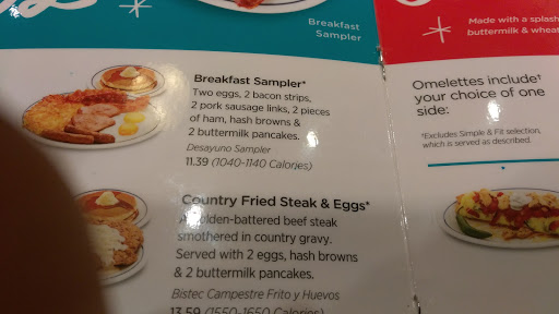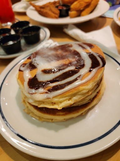 We went here as a family and ordered breakfast. We had not been to an ihop in years. Usually we eat at Dennys because it is near to our house but on this day we were out shopping at the mall and wanted to go somewhere the kids would like. Right when they braught the food it was instant dissapointment. The meal sizes were so small we were seriously all finished eating in about 5-7 minutes.Than we were all just sitting there still hungry and not know what to do. We actually all ended up ordering another combination breakfast meal. This is something that has NEVER happened to us before. Never have we been in any restraunt and had to order 2 complete meals for each person. Our bill ended up being almost double than when we would have paid going to a decent dinner restraunt. We will never go to I hop again. I reccomend Dennys. You get so much more for your money there. I do however like the differant varieties of pancakes you can get at ihope and the food is good but dennys is so much more value for your money.