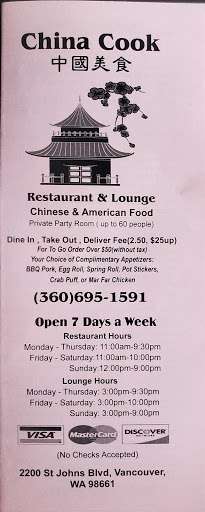 Owners of China Cook, where do you get off providing delicious food and quality service! By now you have probably figured out I am speaking ironically as this is by far the BEST Chinese place in Vancouver. Cant believe this is the first time we have been here!!! Dictated, not written.