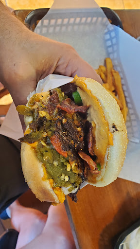 Wait time was about 30 minutes from the time I placed my order to me receiving my food. It wasnt super busy for the time of day, but waiting half an hour is kind of irritating. I ordered a fatty classic which is a double bacon cheeseburger, essentially. The burgers flavor was mediocre. Pretty much the entirety of the flavor came from the cheese and the toppings. Burger itself was almost tasteless. The fries were probably the best part about the meal. Really great fries. They were kind of stale from being in the open waiting for the burger though. The price was rather exorbitant for what you get. 16 dollars for a rather shoddy double cheeseburger, fries and a large drink. The atmosphere was pretty good. Fairly spacious eating spaces, great music that wasnt too loud, but this probably isnt a sit down with the kids type of place.