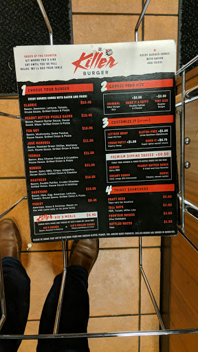 I think Killer Burger is my favorite place to get a burger in Vancouver. Its relatively quick, burgers are a great value, and a decent draft beer selection. Its an even better value if you come in for their killer hour between like 2-5 during the week for 5.95 burgers. All burgers come with bacon and unlimited fries - and I would much much rather come here than say Red Robin. If you havent had the peanut butter burger and you enjoy peanut butter and burgers, you must come try it. The rest of their burgers arent as weird sounding as that but have a particular topping or two that makes them interesting without seeming like they are trying hard to be unique. The staff is always really friendly and always helpful and upbeat. Its fun coming in because they seem so happy and put off a good vibe.
