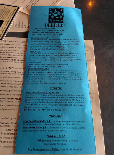 Like the McMenamins out of the way. You have to find it, and once you do, youll be glad youve arrived. In outdoor ambient low-light conditions, all of the hanging amber glass lamps give it a bygone patina. Maybe sometime in teh (LOL Cat) late 1960s through to the late 1970s. Yet non-descript and asynchronic. The exterior is a strip mall, and some may complain, yet it works for me and it fits well in the NE Vancouver area where it may be a McMenamins la ment to East Vancouver, WA urban sprawl. If you can call it sprawl. (Go to Spokane or some urban regions in Texas. Mixes with the heat each of those locales gasp in.) The ales on tap are standard McMenamins with a unique kickers brewed on location. Though the era of Captain Neons Fermentation Chamber passed some time ago for McMenamins (founded at the McMenamins Fulton Pub) the ales are still good. Yet its not 1989 anymore there or for Sierra Nevada. The seating is plentiful at the long, long, long bar and in the dining area. And Thursdays through Sat-Your-Days from the afternoon well into the mid or so evening are full of revelers including the McMenamins East Vancouver in their social plans for the day. Also gets busy during weekday luncheons. The menu has the familiar McMenamins offerings. My fave is (Kens) Communication Breakdown Burger. The tater tots. I cannot go wrong with the tater tots. Such a sweetness about tater tots that you may recall as a child. Well, I do. It chokes me up sometimes to be able to get the tater tots like you can at McMenamins and no where else. The salads are really good to. Its not all burger and fried potato fare! Like all places NE West, from like Yreka, CA all the way up, the place can be full, and its not like loud-loud. You can speak to people with nearly a normal voice. The music McMenamins is quite alright and not ever too loud. Parking a-plenty!