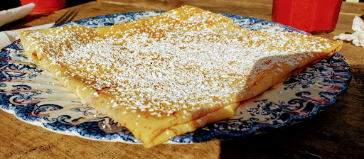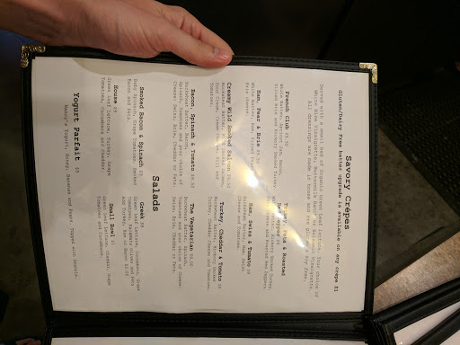 Good crepe but a bit heavy. Almost pancake weight. Good news it was delish and filling. Place was half filled and service was friendly but not quick. Lots of cute touches make this a fun visit.