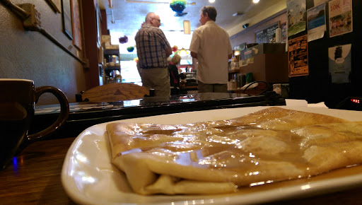 Great coffee, and a good selection of sweet or savory crepes. The ham, pear and brie is my favorite. Its a small but cozy spot with a lot of interesting art (and table numbers).