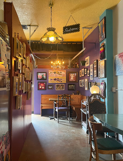 Ive had coffee here which was good but would not recommend the crepes. The vegetarian crepe on buckwheat was absolutely dry and had hardly anything inside it. I couldnt taste the cheese at all, and on a few bites I could taste spinach and tomato, but it was mostly the taste of dry, wheaty bread. I would suggest that they come up with a yummy and flavorful sauce, and to not be stingy with filling. I hardly ever leave bad reviews, but the food just wasnt good. On the other hand, the atmosphere was nice. I enjoyed the artwork displayed and it was a beautiful little cafe.