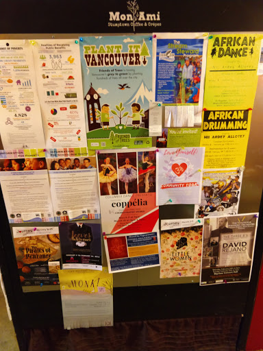 During our visit to Vancouver, this was the most pleasant experience we had for dining! The room was filled with local ma that obviously frequent this delicious creperie. We had a sweet chai latte and a French press- both were perfect! Mon Ami offers creative drinks, like the coconut curry latte, for the more adventurous diner. Our crepes were inventive & delectable. The dining area is filled with quaint, mismatched furniture, making it very cozy! Highly recommend!