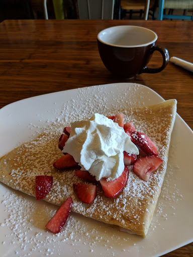 This place was really awesome, in a quaint calming way. I had the French crêpe and a coconut Mocha. The crepe was amazing. Possibly the best Id ever had. The coffee was really good. The service was great. I will definitely be back. This would be the perfect place for a breakfast date. Cozy and good atmosphere.