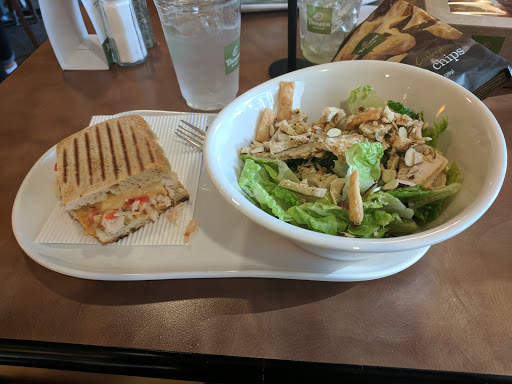 Great food, but the staff need some work. No one seems like thwy want ti be there. Not very attentive at the register (one time i watched the cashier sweep the entire back area before helping me), and Ive had my order messed up many times where the order is correct on the receipt but i recieve say a salad that looks completely different from last time, or even more often, without the dressing. Panera Bread is delicious, it jist needs to update its training methods.