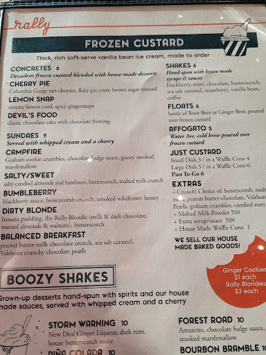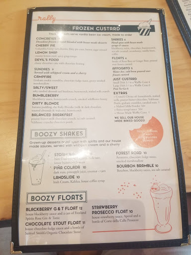 Nice atmosphere, decorations. Friendly staff, and prompt service. Pizza was fair. Im not a fan of thin crust pizza, and was a bit soggy. Was disappointed that its called "Rally pizza", but when there are only a handful of pizza designs offered. I was looking for a basic Canadian bacon and pineapple, but to find they dont have the design, and furthermore, no pineapple, period. I was able to add toppings to an already designed pizza, but 2 toppings (green olives, and Canadian bacon), costs me $4, and $3 to add. 7.00 bucks for 2 toppings, outrageous! Crispy potatoes were tasty, family liked the camp fire sundae, and the pumpkin pie concrete. Finally, my biggest disappointment is the tipping standards for the restaurant. On the receipt, that the tips are shared by everyone. Meaning, waiter/waitress, cooks, and the others. Myself, coming from the service industry, working as a waiter in restaurants, casual, and fine dining on cruise ships. I am disappointed that someone other than the person, or persons that serves me is making decisions on how, or where my tip to them is dispersed. That choice, after I give the tip, should be at the discretion of the waitperson that I give it to. It could be that, the service was GREAT, but, the food was poor... Or vise versa. It gives more incentive to the waitperson, to work for the tip, and appreciate the tip, if they know that it will be going into their pocket. And if they choose, which many do, they give a percentage to the others. But that s their choice. Myself, if the food is well cooked, I personally will tip the cook, as well as the waitperson. But it shouldnt be the owners decision, especially when, the wait staff are taxed on the tips, and many are included as part of their wage. Overall it was a good experience. A review is just that, someones opinion.