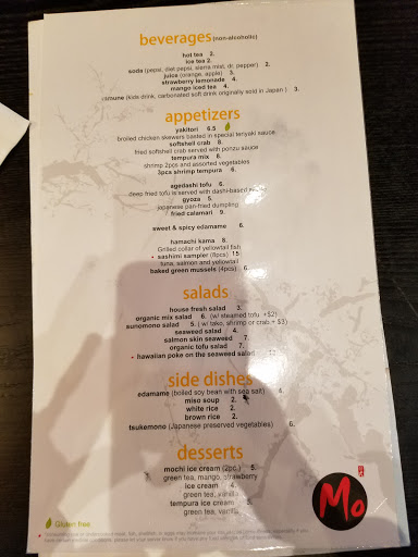 Pros: great decor, friendly service, awesome food Cons: prices a little high Honestly, you get what you pay for and the food at Sushi Mo is definitely worth it! Dont expect to pay sushi-belt prices nor sushi-belt food. Everything my wife and I ordered, from the shrimp shumai appetizers to the salmon hand rolls & dragon rolls, was gorgeously prepared and tasted fabulous! I would definitely recommend this place to family and friends!