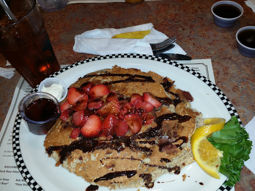 Ive been to Black Bear Diners in other cities, and it was just a typical unpretentious diner. However this venue was a brand new building that seemed like it would better fit a trendy Italian restaurant. This establishment seemed to want to impress with serving size and forgot to do anything else. At my table one persons pancakes had strips of plastic in it and had to be sent back. I ordered salad with Balsamic Vinaigrette, which smelled seriously off, and when I tried to nicely bring it up to the the waitress she instead made a big embarrassing production out of it and brought the manager out, but his explanation could be summarized as "thats just the way it is." Across from us, a man African American man sitting alone waited over 30 minutes to be helped and finally gave up and left. I really cant say the oversight was a race thing (judging by the mix of ethnicities at my table) but it sure looked bad. I have no desire to come back.