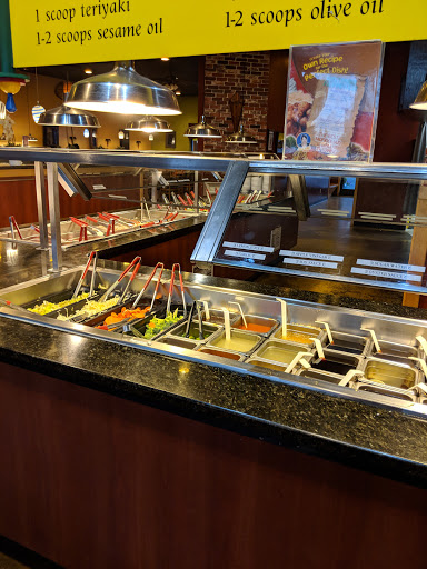 Went there on a Tuesday afternoon with a fairly large group of people and The place was filthy. I skipped the meat selections because they didnt look fresh and the bins were left uncovered, with a large portion of the meat in the bins being well above the ice line. There was sauce that had spilled and dried into sticky splotches all over the counter where the customers set their bowls prior to the cook putting them on the grill. Other than us and one other group, the restaurant was not busy, yet the spills had been left long enough to dry. When I went to get a fork I had to sift through the bins to find one that didnt have rice or straw wrapper pieces stuck to the tongs. About five bites into my rice noodles and vegetables a black hair, about 4 inches long, came up with the noodles. When the cashier walked past and asked if she could take my plate, which Id stopped eating, I showed her the hair. She snapped at me, "Well, I isnt my hair. Mine has been put up." I told her it wasnt mine either (my hair is reddish brown. She then pointed at my friends, who were sitting at a different table, and she said that it probably belonged to one of them. She then took the plate and walked away. I wasnt asking for my money back, I just thought that she might have been concerced about enough to check the food line, or that she would at least apologize. Another member of our party had came in late and only wanted to buy a drink, as shed eaten already. The same employee told our party member, "Id better not see you eating." when she rang up her drink. The only thing dirtier than the restaurant was the rotten attitude of the employee. I will never go back.