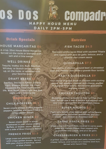 A great little place. Food is good, prices are reasonable, service is good, warm and inviting atmosphere, $1.50 magaritas during happy hour which lasts until 6:00 pm.
