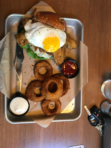 My wife and I had dinner on Tuesday. I thought the burgers were average at best and overpriced. I had onions rings that had good flavor but they were about 99% breading and 1% onion. My wife had regular french fries which were very good. They were out of my wifes favorite beer, Hefeweizen. Service was very good and friendly. In our opinion, Red Robin which is about three blocks away has better burgers and onion rings. We wont go back.