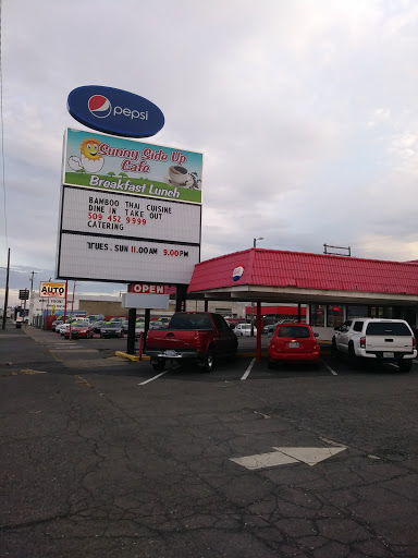 We stopped in after hearing this place had opened and loving the signage (which at this point is yet to be changed from the prior diner!). We ordered takeout and they did good work getting three entrees and soup ready in about 20 minutes. The Pad Thai, Pud See Ew and sweet/sour pour graced our plates for the evening and our bowls were full of Tom Kha soup. This combo fed 4 adult and 3 kiddos with plenty left over! The pad thai was standard and solid, with a good amount of kick. The Pud See Ew was delicious, though a bit more sauce to prevent noodle clumping would have been preferred. The sweet and sour pork was delicious and included a ton of veggies and a really good sauce. It was a nice break from an otherwise carb heavy evening. The stand out dish was the Tom Kha soup - If you havent had this before, you need to try it. A coconut milk base with lemongrass, ginger, lime juice, chile paste, basil and cilantro. With a little chicken and mushrooms here (A+), this was some of the best Ive had. Its a brilliant symphonic dance of savory, slight sour, and salt, mixed with chicken and earthiness of the mushrooms - Papa like! Plus, they included less of the inedible pieces - namely the ginger root, so there was less picking wood out of the soup and more enjoying the flavor! Nice folks working the place and they included a Thai ice tea with our takeout order! Ran about $50 for the meal and with left overs, we felt like it was a fair price for what we got. Definitely worth a try and a picture with the Sunny Side Up Cafe sign out front!