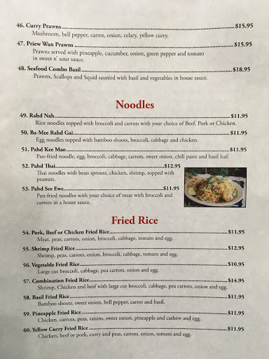 Food is excellent!!!!!! Give this place a try, your taste buds will be doing jumping jacks, this place is delicious..... We ordered the Asparagus dish on special, the sauce was very tasty. We also ordered Phad Thai and hands down, the best Ive had!!!!! We also ordered the red curry and again- it was delicious..... If you love Thai food or you want to try something fun and new, give this place a try!!!!!!