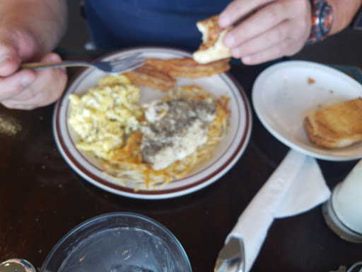 They had lots of staff but only one waitress. We had to wait 5 minutes to get our silverware after our food arrived. Before that, we had to wait 20 minutes to order. The biscuits are really dense. Needless to say, we will not come back and not recommend.