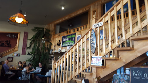 NOT FAST FOOD, its made fresh so give yourself time to relax. Reasonably priced, relaxing atmosphere. Very clean. This quote was seen inside "Backwoods Cafe nothing fancy, just good food". They have wifi and an area for groups.