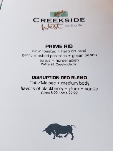 We decided to go to Creekside to celebrate our 32nd Anniversary. They set up a beautiful table for us. The waiter recommended the Gorgonzola Angus Sirloin. We have ate at a lot of high end restaurants and to tell you the truth this was the BEST MEAL we have ever had and it was at a reasonable price. It was to kill for!!! The service was awesome. For the Merlot wine lovers I would recommend the Velvet Devil, excellent!!!