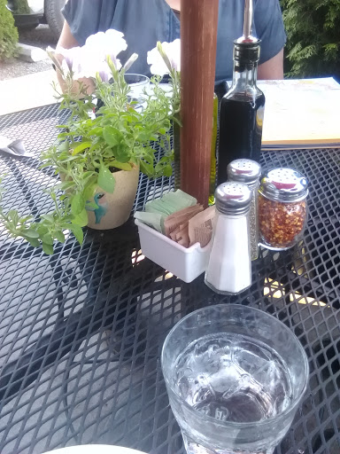The food is amazing. The service was by far lacking. I have eaten here twice before with good service. This time we showed up and the place had one person sitting inside and multiple tables outside seated. We sat inside next to the air conditioning. Shortly after we sat down others groups arrived and sat down. We did not get served first though others sat after us got served before we did. Aside from the person providing water but not taking any orders no one came by for 15 minutes. When we finally received service it seemed clear that the person waiting our table was not assigned to our table and just happened to have noticed that no one had yet served us. We asked how long it would take to get a pizza, she checked and returned to tell us 30 minutes. We said that we wanted a salad and two pizzas. We wanted the pizzas to go because we did not have enough time to stay and eat pizza when it would take so long. Given that other tables that sat down after us had already had their orders taken and in the queue to be made, we were not especially happen. We asked for the salad to be brought out because it did not have to queue up for the pizza oven. Well the salad arrived 2 minutes (literally) before the pizzas did, which put us at the time that we needed to leave. So instead of eating the salad we asked for it to be boxed up to go, but the waitress protested, we explained, and then she boxed it up. She did apologize, but then included excuses so it wasnt really an apology. However, the pizza was great! The salad, so so, because everything was packed separately and would have caused quite mess had it been eaten while driving. We were able to eat the pizza while driving. When we got home an hour later, (literally), I had to leave 5 minutes later for my next adventure which was why we had to get the food to go even though we should have been able to have eaten while at the restaurant. One table that came after us had already finished their meal and were about to leave when our salad showed up. So if you eat here the food is really good, but I suggest you call it in and pick it up or else plan on staying two hours because their wait staff is understaffed, chaotic, inefficient and their kitchen apparently cannot make more than 4 pizzas at a time. I suggest that they add more pizza ovens and figure out how to know which guests show up and when so that the first come is first served rather than last served. The whole reason we came to Yelm was because they invited us via email to attend the jazz festival which we enjoyed. Afterwards we came for the pizza because it had been delicious and continued to be delicious. However, whether we visit this pizzeria again in the future, time will tell, but the answer is likely no unless we plan for the visit to this place to be 2 hours. And there are times that taking 2 hours at a restaurant to enjoy the ambiance is worth it, but this time, we did not have the time. 45 minutes should have been enough and was had we been lucky enough to have got served first like we should have been served first since we arrived first.