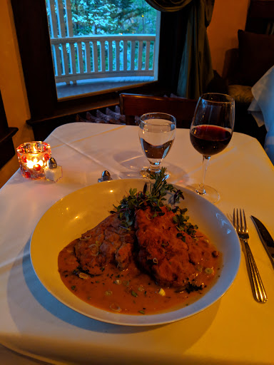 After the rave reviews and the great website, I thought this would be "THE PLACE" to celebrate our anniversary. While the atmosphere and service was superb, the food was less than acceptable. After traveling extensively, I have experienced amazing food and this, simple…was not. I ordered venison sausage as an appetizer. While, this MAY have been good, the “BBQ sauce” that accompanied the sausage was spicy to a fault of being overpowering. For my entrée, I ordered the crisp roasted duck. Duck is one of my favorite selections to order, so I have had my fair share. This duck was dry to the point I could not swallow. I left more on my plate than I consumed. My husband ordered the calamari, which was flavorless and rubbery. He also ordered the trout, which I did not taste, but he felt was dry and unappetizing. If I ever visit Berkeley Springs again, I will steer far from this restaurant.