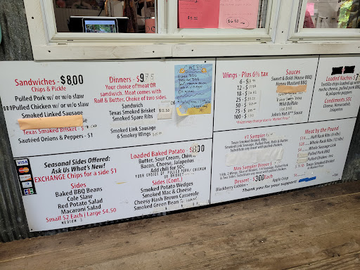 Great Food, large portions for little money. The Owners are great people too My favorites are the ribs and brisket I get 3 large ribs for $6 They recently added kayak rentals