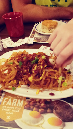 This is the worst Bob Evans in the area. We stood waiting to be seated for 10 minutes while the staff were in the kitchen trying to figure out what to do with the food sitting under the warmer. Another couple said they were leaving after waiting 45 minutes and never receiving their food. Cook in some type of tank top and very sloppy. I saw a manager walk out the door. We finally left before being seated. Another time we tried this location, server was sitting under the counter looking at his cell phone. We have tried on several occasions to give this location a chance since it is close to our home but no more. We will travel to Teays Valley location from now on. This location needs shut down until they can get their staff motivated and straightened up.