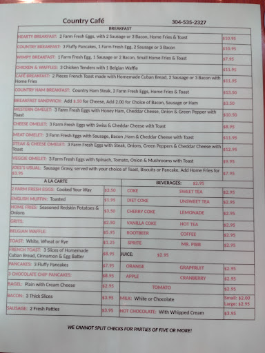 The Country Café was great, good coffee, decent portions and friendly servers. My only complaint was that they could put more cheese on their cheddar bacon foot-long hotdog...