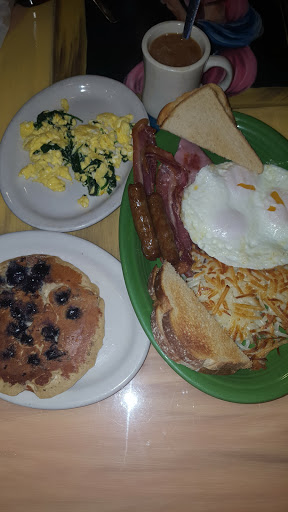 Good place to eat. I always get the Ham and cheese omellete for breakfast or the burrito californiano. The food usuallly pretty good some days better then others. Only time i was disappointed was when the 4.99 breakfast only came with hashbrowns, grits etc instead of bacon, ham or sausage. I usally always eat my eggs with bacon with a side of toast but i passed when i seen bacon was 3.19 for a side. However the Mexican food is good.