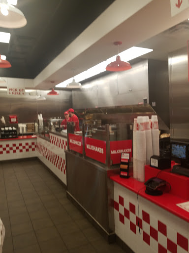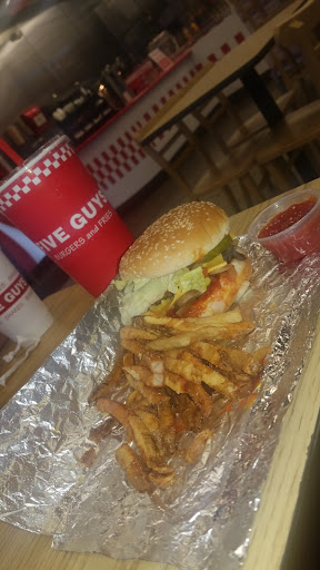 Friendly staff, good Five Guys service, better than fast food. Yeah its pricier than the surrounds, but you get better too! Have a peanut butter bacon milkshake.