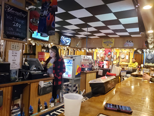 Great food! Cant beat steak nights (Wednesday and Sunday)! Great staff! Plenty of draft beer selections! Dart boards galore. Video lottery. 3 pool tables. Cornhole boards outside. Fenced in outside smoking area.