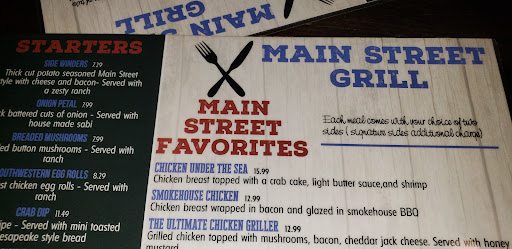 Just had dinner at main Street grill all I can say is outstanding food,service,atmosphere every thing just right