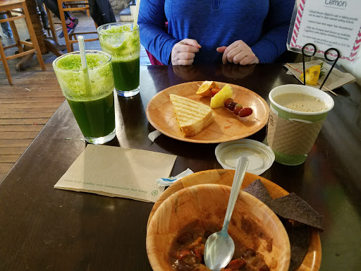 Great, informal place. Fresh made juices. Coffee. Food options leaning towards the healthy and organic. We got the apple/ginger/wheatgrass juice, a toasted cheese sandwich, vegan chili and a coconut oil coffee latte. Everything was very fresh and very tasty (and I frequently dont appreciate vegan oprions). Everyone was very friendly and the place is much roomier than it first seems, if you wander around a bit.