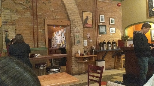 A nice, comfortable atmosphere. You can choose from traditional cafe seating, or lounging in a more *home* like setting. The staff is really down to earth. The food is great, the nachos are my favorite! If you like a nice coffee, try the Myan!