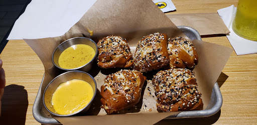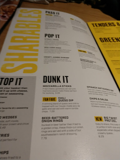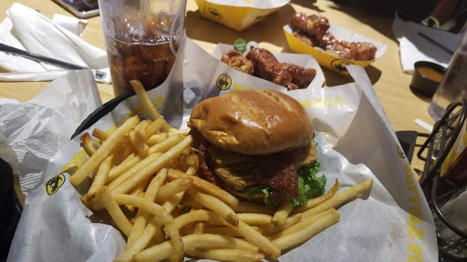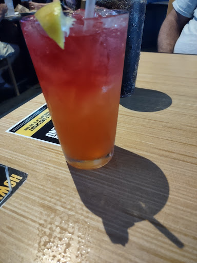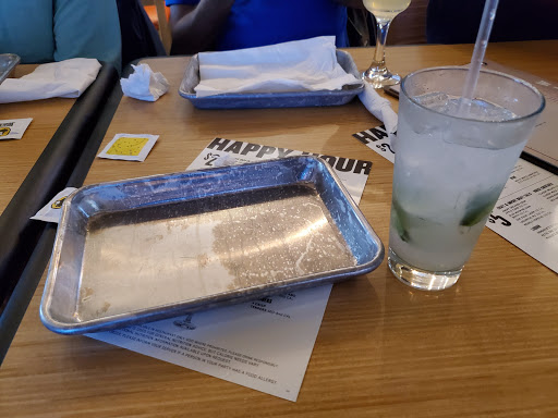 Tends to be packed with people weekend evenings. Service is decent. Wings arent my favorite. The rubs dont tend be applied too long after deep frying so I end up with naked wings and a pile of lemon pepper seasoning at the bottom of the basket. However, I do like a lot of their other food, especially the fried pickles chips. A lot of the mixed drinks are tasty as well as the flavors lemonades. The tables seemed to be packed a bit too close together - it can be a little uncomfortable. We specifically choose to sit in the bar area to be with other adults. I dont appreciate when they seat families with small children in the bar area, especially when Im stuck on the shared bench seating with jumping 3-5 year olds while Im trying to relax and enjoy adult beverages. Bar should mean 21 and up only. My husband and I like doing the trivia and watching hockey there.