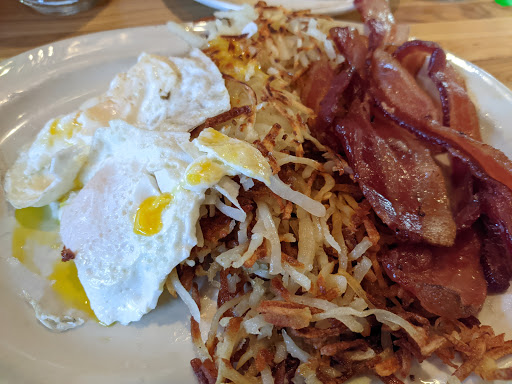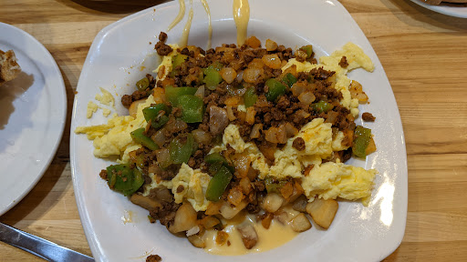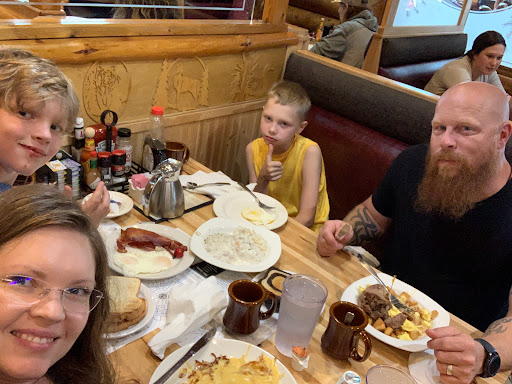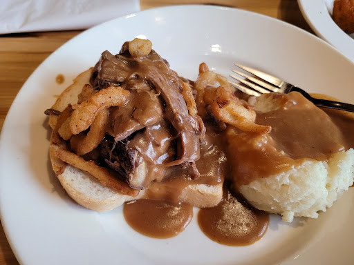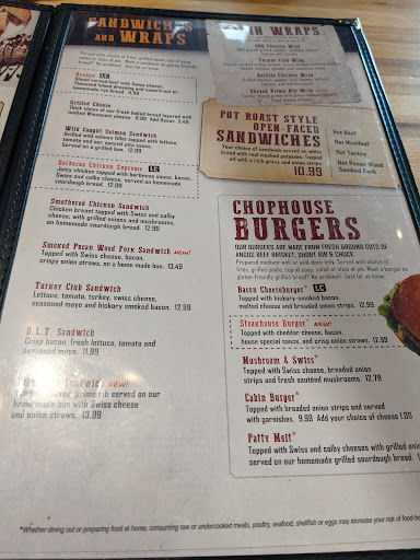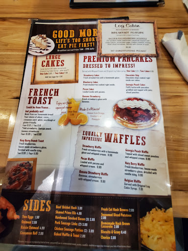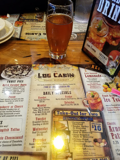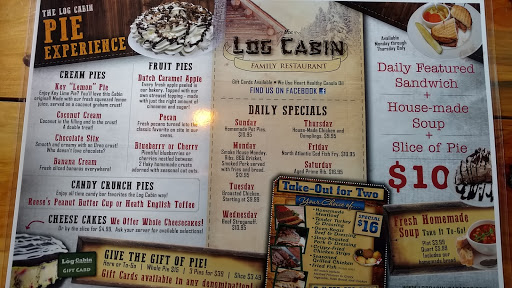We live just 16 miles from the Log Cabin and visit there frequently. We have ALWAYS found the food to be great and the service excellent. When they are busy, which is often, it can be a bit noisy but it is worth putting up with the noise to get the food. Food always arrives quickly and hot. Its not a fancy restaurant but instead a place you can just get up and go to no matter how you are dressed. Thats a good thing because we do that often. Their prices are reasonable and their portion sizes are more than we can eat. We always need a take home container. Wonderful place I highly recommend. Oh, got to add that their baked goods are to die for!