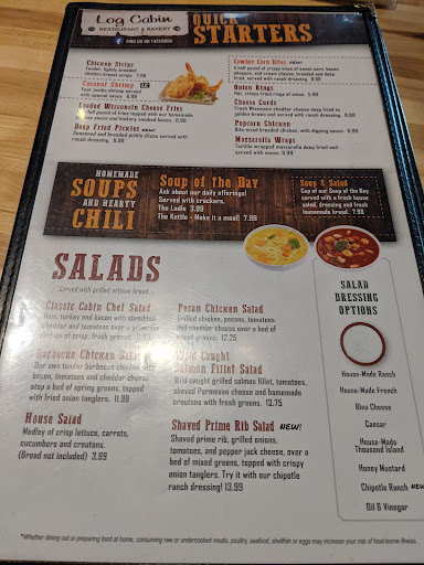 The Log Cabin Restaurant is one of the better dining spots around the Baraboo area. We often frequent the Cabin when we go out for a meal, and have many times recommended it to friends and community visitors. The food & service has been top notch .... until tonight! In the last couple of weeks they changed the menu and began offering a couple of new dishes... good! They are known for their great soups and we commonly try them. As we did tonight - the menu states that soup comes with the meal, and thats what we ordered. It was as good as expected. When the waiter brought our bill, I noted that both of us were charged an additional .90 cents for a soup upgrade. We did not have any upgrade, so I quizzed the waiter about it. He told us that it is an error in the new menu and they forgot to post it - but the charge was accurate. I questioned further as his response made no sense. He asked for our payment at the table - which we complied with the extra $1.80 paid. He returned with our change stating that he had just spoken with the Manager about my concern - and she had apologized for the menu error - but the added charge was valid. He noted that other customers had questioned the charge to him also - but that it was a valid charge. At the front counter I re-read the menu and verified there was no mention of an extra charge. I then quizzed the Manager about it and she told me that there was NOT such a charge. I presented her with my receipt and she was very confused. I then asked if he had spoken to her about my complaint at the table and she stated that he had not. I asked for my refund as it was apparent that the waiter was up to no good, and the $1.80 was returned. As I had left a tip for the waiter on the table, I went back to recover it as he clearly was lying to us. He had taken it and immediately went into hiding. I asked the Manager to call him over so that I could speak to him in front of her ... she declined, stating that she would talk to him. I told her of his taking the tip money I left, and that I would like it returned - offering they could share it with the other wait staff - but he should not keep it! She stated that she would talk to him about it also. Will we go back ... likely yes as we live here & enjoy the better side of Log Cabin. But we wont accept that guy as our waiter again..., and will always pay at the front desk - not direct to the waiters pocket. Waiter rating tonight - VERY POOR!
