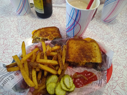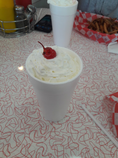 DAMN GOOD food and fairly priced. Shakes were to be desired, had a similar taste to McDonalds. The issue I have with this place is their irresponsibility. Asked for water, got Styrofoam, got a shake, got Styrofoam, got a portion to go, got Styrofoam. The amount of waste these guys are creating is appalling. Putting profit over responsibility is not a good look. Maybe it fits with the ignorance of the 50s and 60s. Smaller complaint was the stuffy feeling in there. It was a beautiful day but the garage doors were closed. I noticed they seemed caulked shut. Why is that? Having them open on a beautiful summer day would be an amazing vibe. Had to do 2 stars off for the Styrofoam. We should be passed this.. Ill gladly update this post if you decide to go compostable!