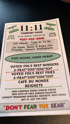 First off, who leaves a review of a restaurant they didn’t even try the food of—not to mention not even having the integrity to own up to who’s reviewing the restaurant in the first place—seems childish to me. I’m also not sure how someone leaves a review when spending little to no time in the restaurant itself. Oh, and I just so happen to be browsing on yelp, trip advisor, and facebook, and saw the EXACT same post on all four of these. Seems rational to me to go out of your way to talk about the experience you DIDNT have on four different review sites. LIKE REALLY? WHO DOES THAT?! After taking these two factors into consideration, I can say with complete confidence only an idiot would listen to feedback from someone who didn’t even experience the place themselves. Anyways, I’ve had my fair share of burgers, and 11:11 has far and away the best burgers in not only Fond du Lac but the Fox Valley Area. I would encourage everyone to try them! Then, maybe you’ll have an inclination to let everyone know how your experience at 11:11 Burgers and Beignets was. That is, if you actually try the Burgers yourself. Oh, & the rest of the food is fantastic as well :)