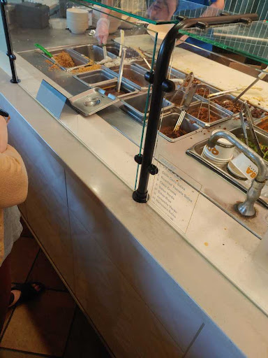 Some people love this food and I have no clue why. My very first time, I got a chicken burrito and there was a piece of plastic in it. I am pretty sure nothing is prepared on site, everything is extremely processed and I am afraid to know the sodium content. They just refill containers with huge bags of processed food. I had a horrible stomach ache after, not for people who actually care about what they are eatting. Prices are average and staff is very friendly.